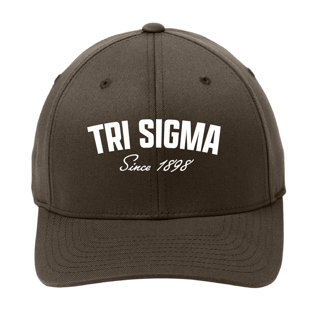 This Established Port & Company brown Flexfit hat is embroidered with your sororities name and established year across the front in white. Quality embroidery, that is customizable for your sorority. The hat is structured, mid-profile, with a stretch to fit closure. 63/34/3 poly/cotton twill/spandex, the original Flexfit cap.