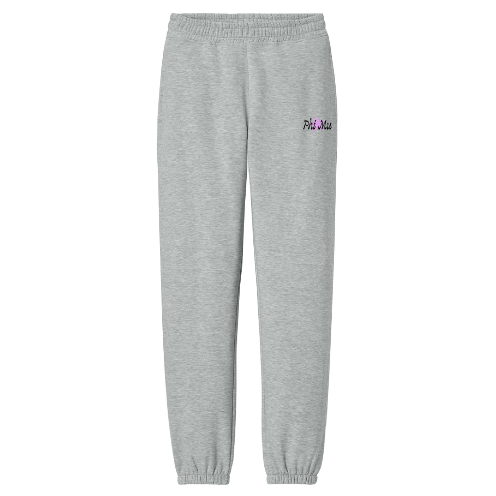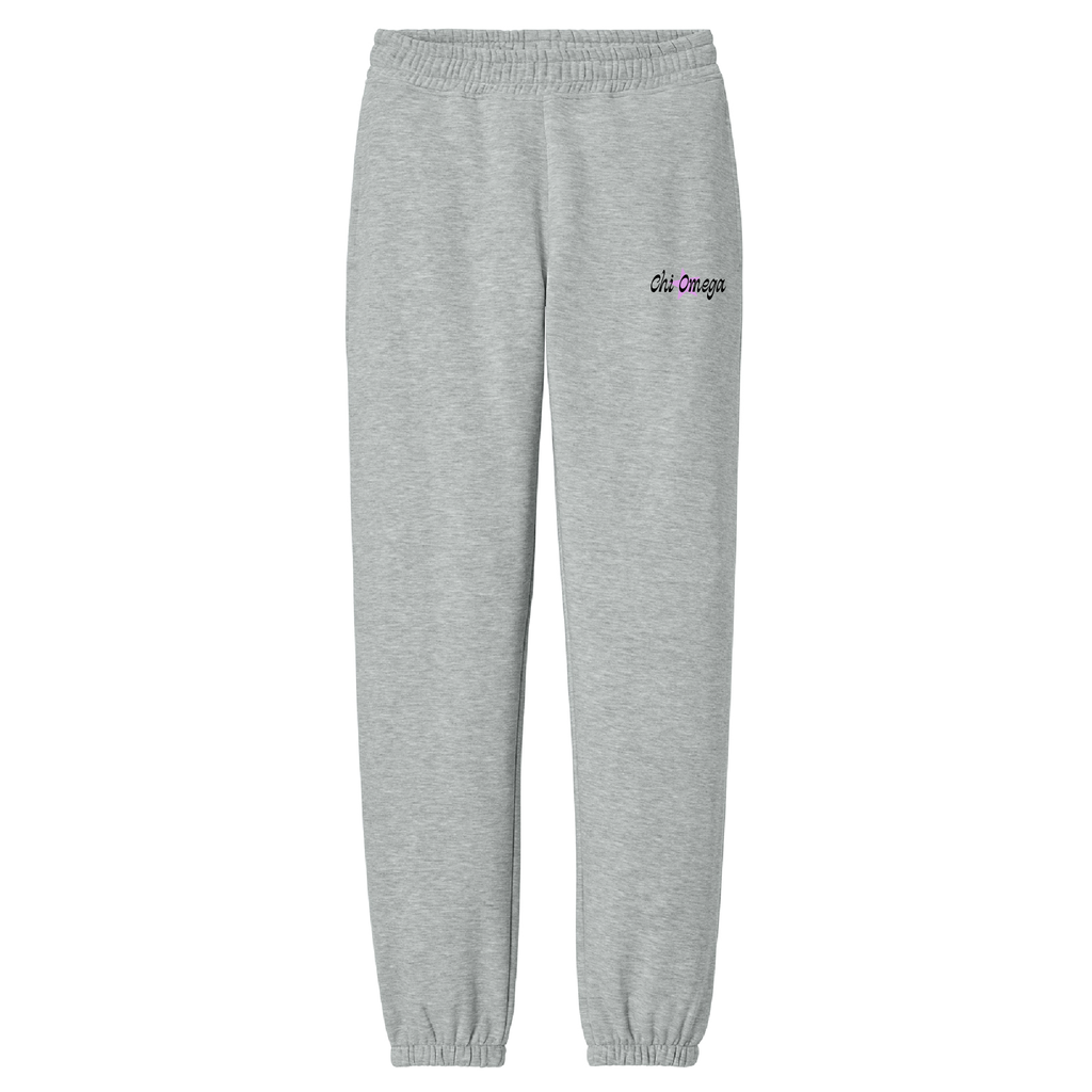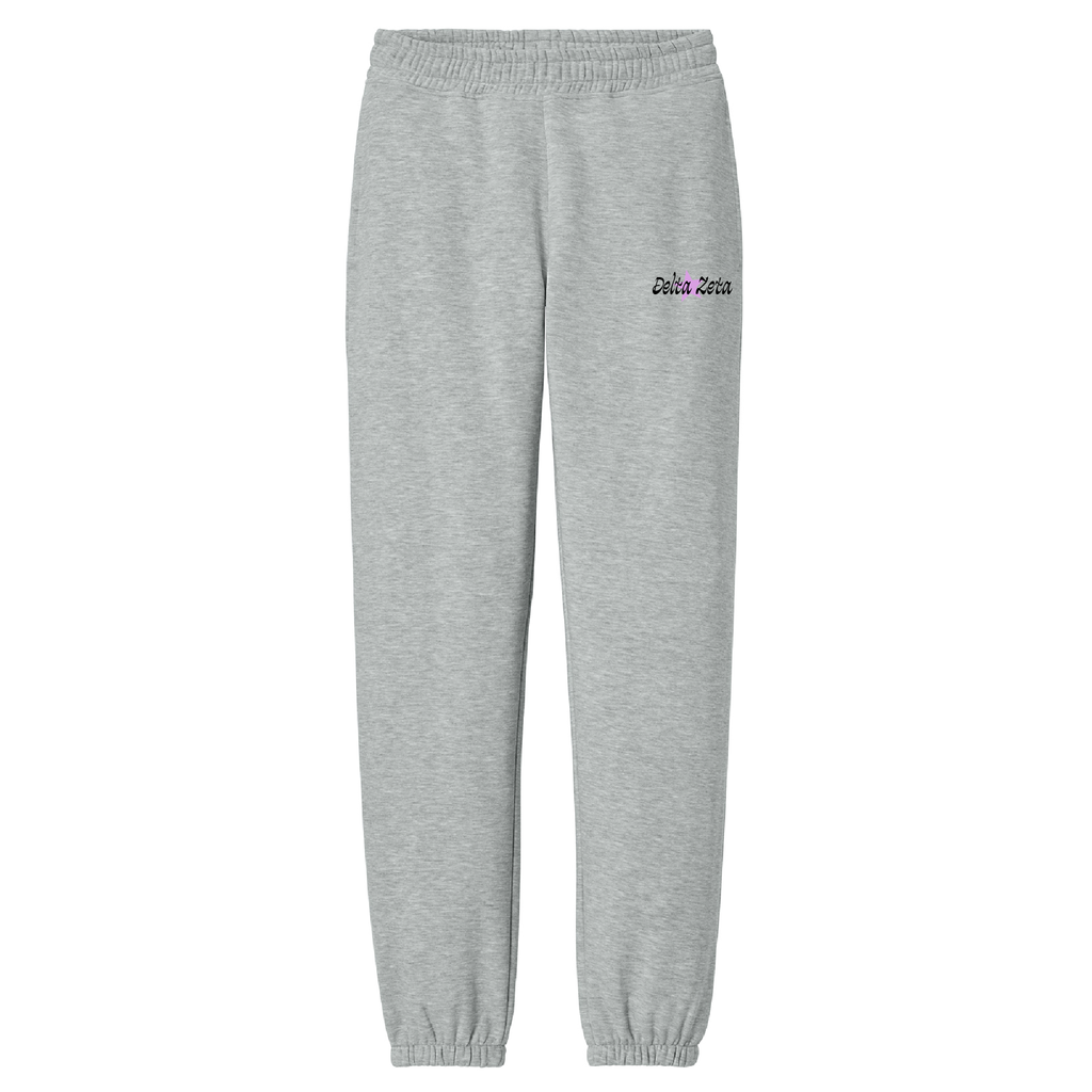 The Sorority Star heavyweight fleece District light heather grey sweatpants are embroidered with your sororities name and star design on the left thigh area in black and lavender. Creating a classic look with quality embroidery, that is customizable for your sorority. The light heather grey sweatpants are 10-ounce, featuring an oversized fit, with a elastic self fabric waistband and cuss, with dyed to match interior drawcords and jersey lined pockets.